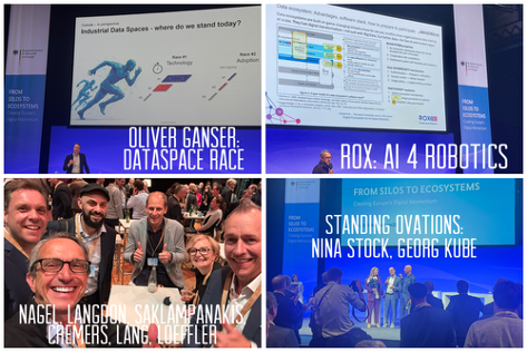 Der erste Tag bot Keynotes und Panels zu übergeordneten strategischen Fragen. Ein Höhepunkt war die Keynote „Critical Reflection – Economic Impact of Data Spaces in Europe“ von Oliver Ganser, Vice President bei BMW und Vorstandsvorsitzender der Catena‑X Association. Sein Vortrag war höchst unterhaltsam und vermittelte eine klare Botschaft: Im globalen Wettlauf um allgemeine, große Foundation Models wie OpenAIs ChatGPT oder Googles Gemini wird Europa voraussichtlich nicht im großen Maßstab aufholen können. Allerdings führt Europa derzeit bei „industriellen Dataspaces“, dem B2B‑„Internet für Daten“, das sicheren, souveränen Datenaustausch über Wertschöpfungsketten hinweg ermöglicht. Gansers zentrale Handlungsaufforderung war eindeutig: Europa darf diesen Vorsprung nicht verlieren, sondern muss die Einführung beschleunigen. Die Führungsrolle für diese Transformation wurde in einem speziellen Panel diskutiert, an dem unter anderem Christian Hort, Senior Vice President Automotive & Manufacturing bei T‑Systems, teilnahm.