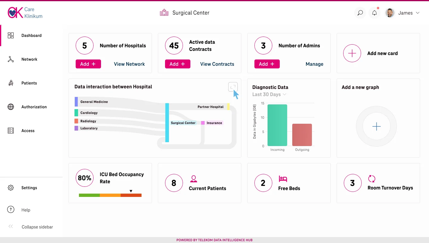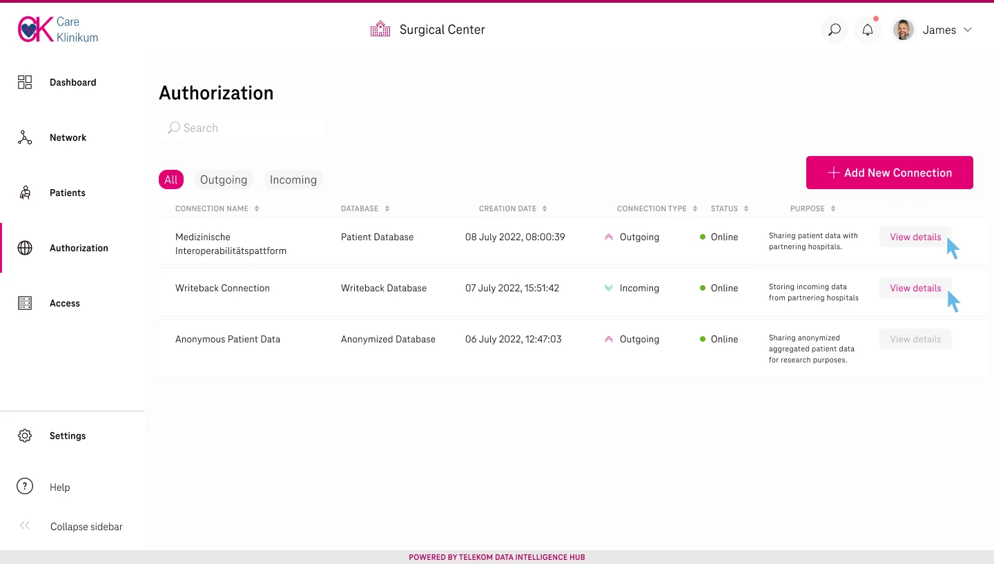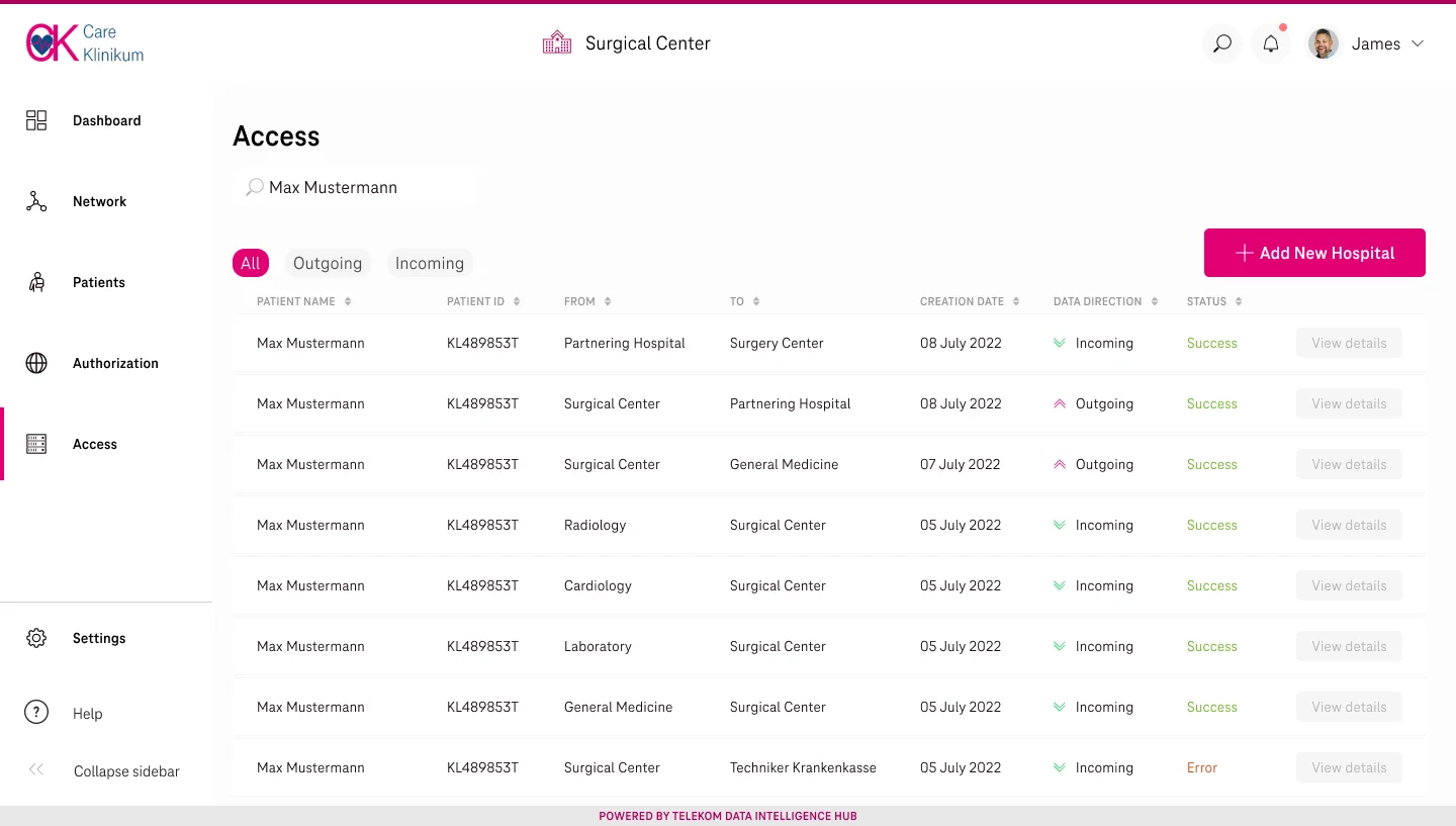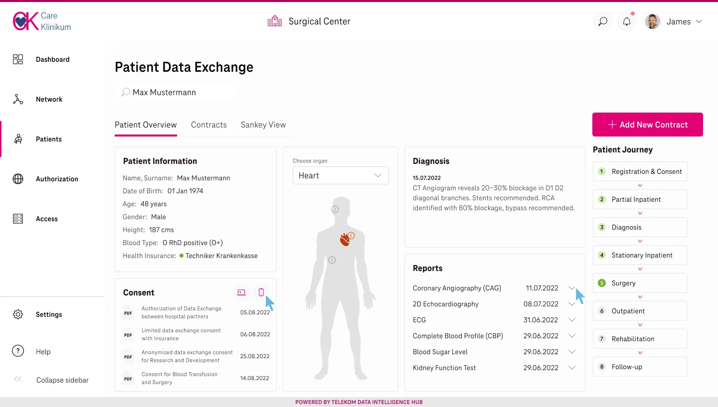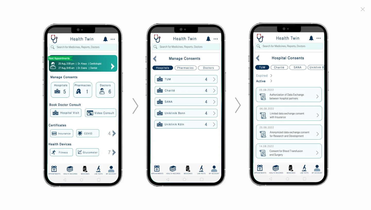 Hospitals use different software systems (like Orbis) to manage patient data in different departments, between the same hospital chains like SANA, or between different hospital networks. It is always a challenge to make all patient data available in one place. This challenge hinders the hospital's ability to provide better personalized care to the patient. The demo attempts to address this problem and shows a possible solution for hospitals to share patient data with complete sovereignty and transparency powered by DIH.